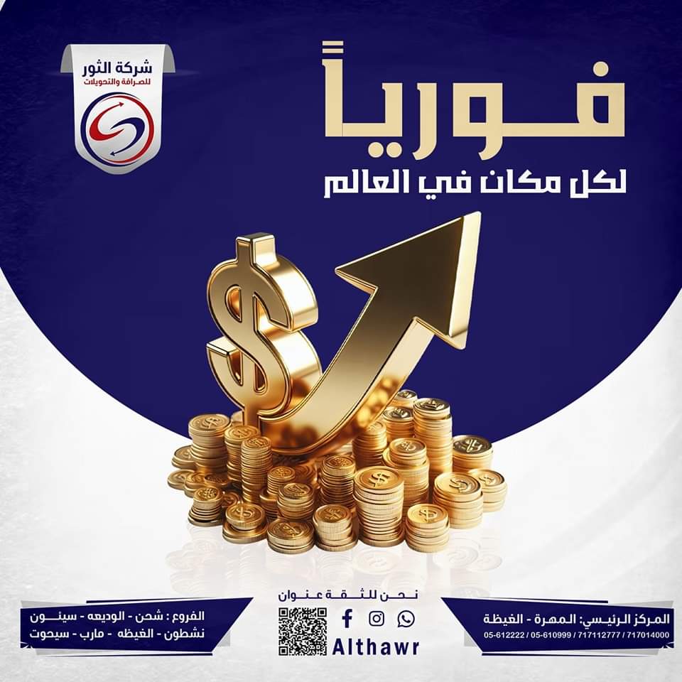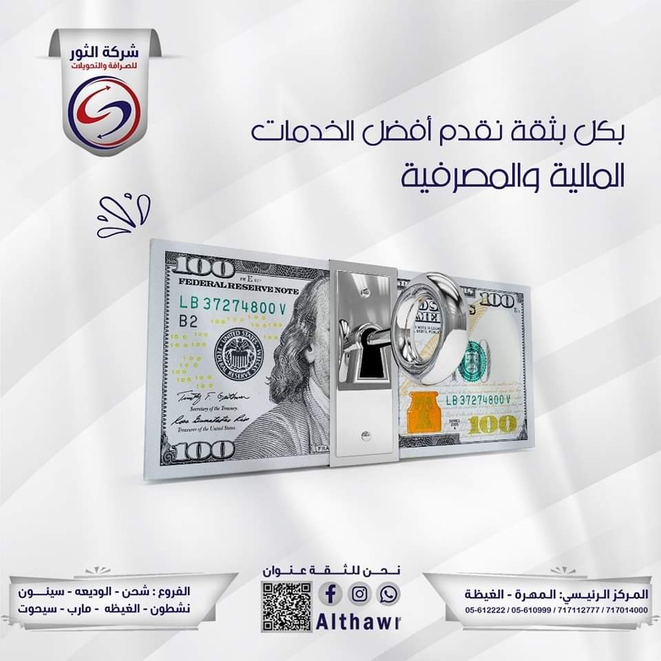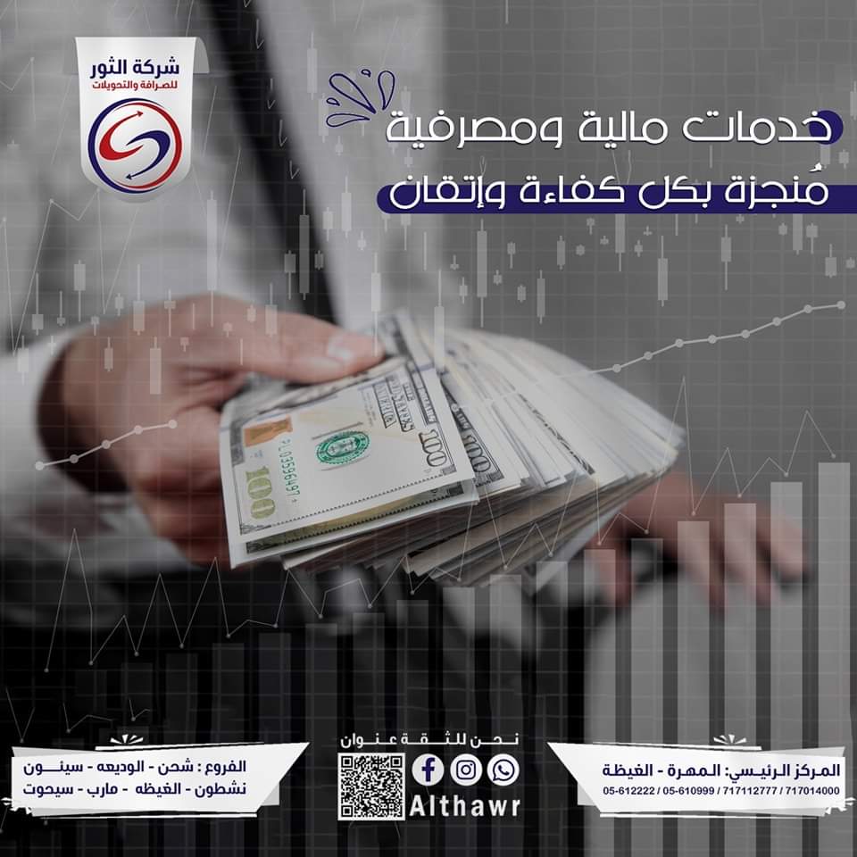 نعمل في مجال بيع وشراء العملات الأجنبية بالإضافة إلى إرسال واستقبال كافة الحوالات التجارية والشخصية من اليمن وإلى العالم وبالعكس